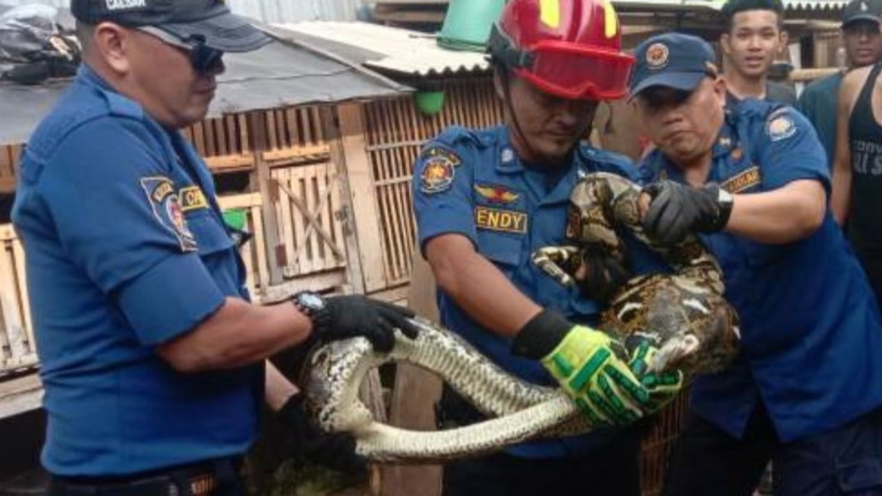 Damkar) Ciledug mengamankan ular sanca di pemukiman.